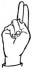 На ћирилици написано ДАНИЕЛ ГОДОЧЕВИЋ састоји се из 15 слова [?]. Исписано ћириличном једноручном азбуком за глувонеме: